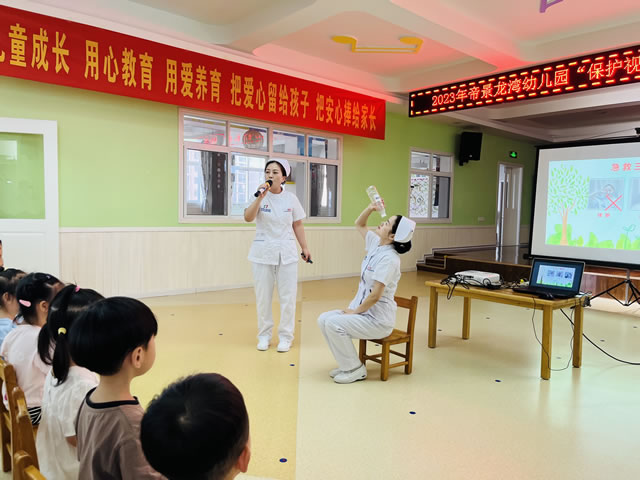 本站讯 为大力普及宣传健康知识,助推全民科学素质全面提升,结合健康中国行动十五项重大行动要求,围绕生命安全、儿童青少年健康等主题,9月15日,汉川市人民医院护理部组织眼科、急诊科等学科医护人员赴帝景龙湾幼儿园举行了“提升全民科学素质,助力科技自立自强——科普健康,携手向未来”的健康科普活动,提高幼儿对急救专业知识的知晓度以及健康用眼、护眼能力。