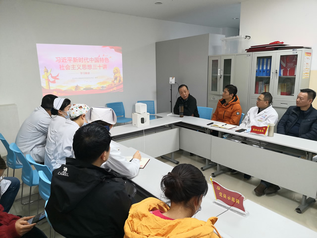 外科党总支书记喻华同志以《学习习近平新时代中国特色社会主义思想三十讲》为题,为全体党员上了一场生动的党课,并就目前医改、医疗反腐新形势等,要求外科全体党员干部提升党性修养,立足工作岗位,结合医务人员的责任和使命,全心全意为百姓健康服务。