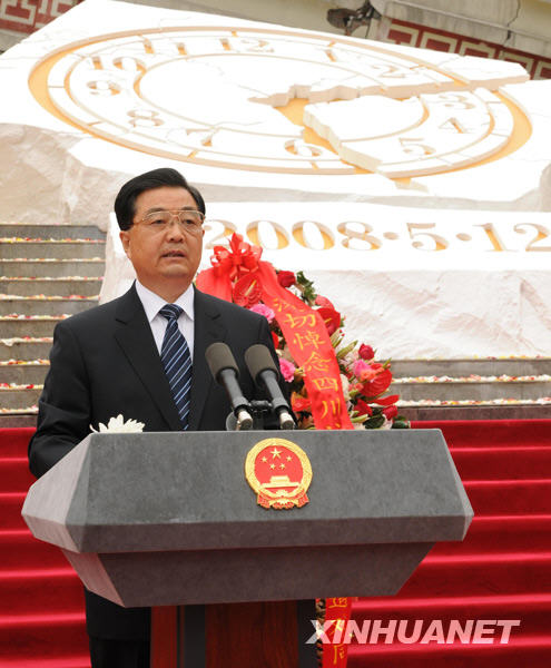 今天,我们在这里庄严集会,纪念四川汶川特大地震一周年,向在地震灾害中不幸罹难的同胞们、向为夺取抗震救灾斗争重大胜利而英勇献身的烈士们表达我们的深切思念。