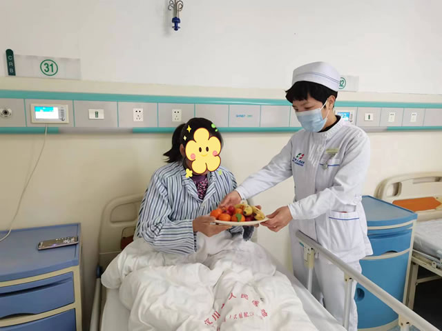 几位康复期患者代表分享了他们的患病经历,讲述了自己入院时面对疾病的恐惧与无助,分享了在治疗过程中医护人员帮助他们积极面对疾病、重塑生活的心路历程和对未来的美好期许,表达了对医护人员的感激之情。活动中,医护人员为科室所有患者送上水果、汤圆以及节日的问候。