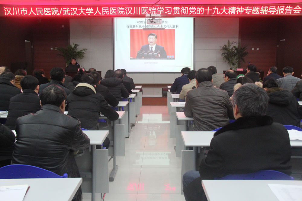 为深入贯彻落实十九大精神,深刻领会学习十九大报告的科学内涵与实质,强化全院干部、党员知党爱党的政治意识,以党建统领医院的各项工作,促进医院稳步发展,2018年1月10日下午,医院党委特邀市委党校尹中华老师来院作十九大报告专题辅导,全院领导干部、科主任、护士长、党员参会。
