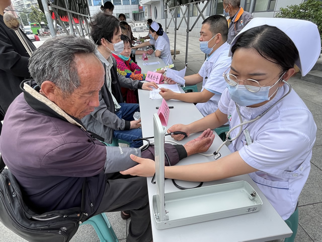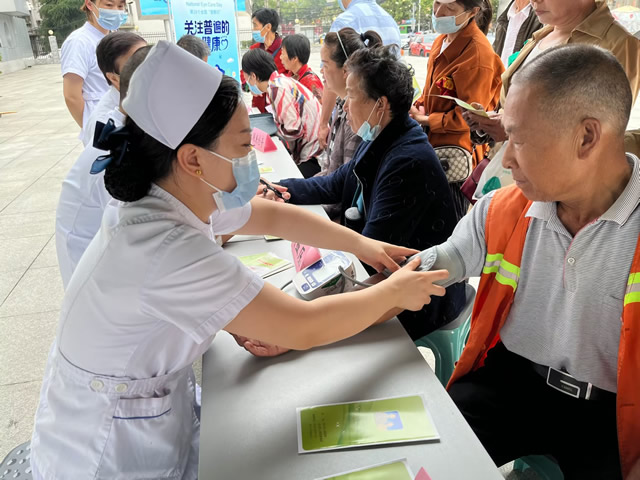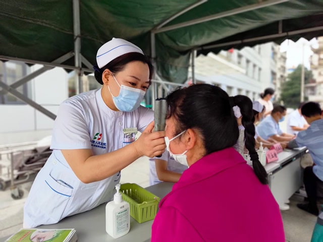 活动现场,眼科的医护人员们细心、热情的接诊每一位群众,为前来咨询的群众建立健康档案,仔细为他们查体、测量血糖血压,有序为他们进行眼视力、眼压、验光、裂隙灯下眼底检查等,讲解眼疾病治疗方案及护理眼病知识,现场还发放眼健康宣传资料。医护人员的耐心解答和细心的检查服务,受到了在场群众的一致好评。