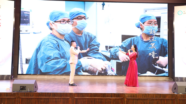 会上还表演了丰富多彩的文艺节目,由医院医务工作者自编自演,诗歌朗诵《你的微笑》、歌曲《你的答案》、舞蹈《阳光路上》等节目与表彰颁奖环节穿插进行,展现了医院职工的优良风貌和靓丽风采。