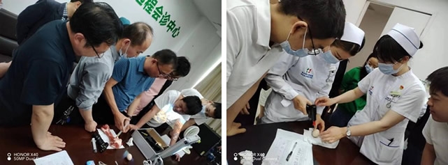 同时利用人体骨骼模型指导学员对穿刺部位和注意事项进行实操培训。