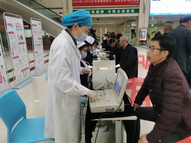 11月16日,汉川市人民医院在门诊大厅成功举办2023年“世界慢阻肺日”义诊活动。此次活动旨在提高人们对慢阻肺的认识,并通过免费的肺功能检测,帮助尽早发现可能患有COPD的人群。