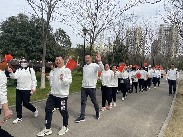 “出发!”随着院长熊勇的指令声,徒步活动正式开始,大家统一着装,精神抖擞,兴致盎然地走在公园健康步道上,一排排矫健的身姿形成一道道美丽的风景。大家呼吸着新鲜的空气,放松平日紧张忙碌的心情,一路上欢声笑语、热情高涨,镜头里都是一张张灿烂如花的笑脸。