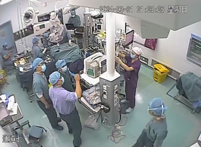时间一分一秒过去,手术室内,只有器械操作的声音,无影灯下,“拆弹”专家们全神贯注。显微镜的镜头在放大缩小中不断切换,小心翼翼的一层层挑开神经“屏障”,精雕细刻地剥离肿瘤。4月1日凌晨零点15分,11名医护,历经16个小时,巨大的脑部“炸弹”顺利拆除,重要神经血管保护良好,无一损伤,手术顺利完成。