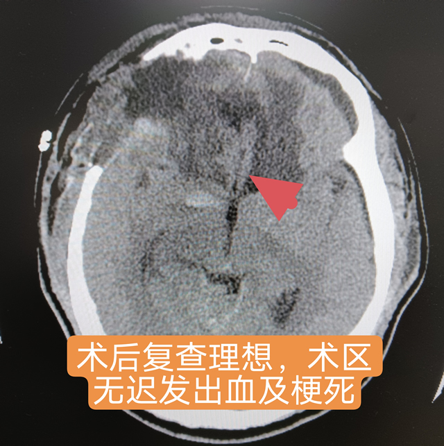 麻醉团队时刻关注患者的生命体征,进行控制性降压、颅内压监控、脑灌注维持、液体管理、体温保护等一系列术中麻醉管理操作。输血科团队为患者实施术中自体血液回收,回输患者自体红细胞2350毫升,同时精准补充异体红细胞、血浆、冷沉淀等血液成分,严密监测患者术中凝血功能变化,维持术中血液循环稳定。手术室护理人员精心护理,做好压床防范措施。