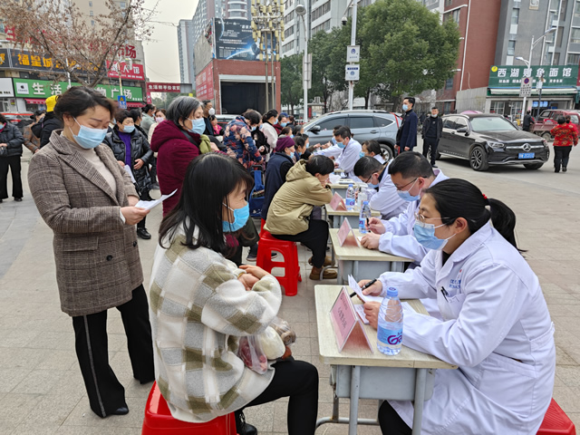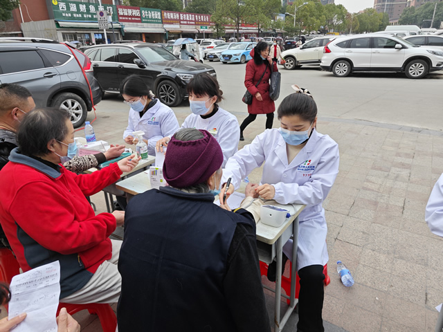 本站讯 弘扬雷锋精神,践行榜样力量!3月3日上午8点30分,汉川市人民医院团委组织心血管内科、消化内科、呼吸与危重症医学科、内分泌科、全科医学科、中医科等学科11名医务人员为市福星社区居民提供基础诊疗服务,普及医疗健康知识,提高防病治病意识。