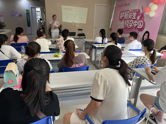 讲座活动中,产科护士长杨琴为大家详细讲解了母乳喂养、婴幼儿护理及孕期保健等内容,耐心解答孕妇们的疑惑,并演示为宝宝拍嗝等操作技巧,现场学习气氛浓厚。产科医护人员还发放了50余份孕产妇宣教手册。