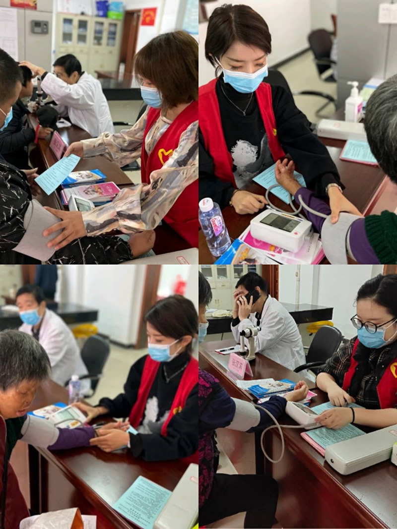2020年10月14日上午,汉川市人民医院内科党支部和南丁格尔团走进了霍城台社区,开展以“情系社区,关爱健康”为主题的健康义诊活动。