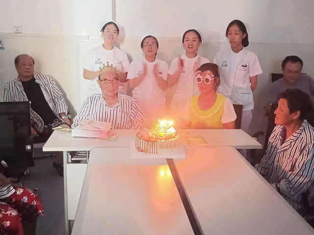 看着眼前的蛋糕,听着欢快的歌声,沈爹爹眼中闪烁着泪光:“谢谢你们,你们的关爱与照护让我很感动,这是我过的最有意义的一个生日!”。