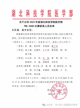 10月20日,湖北科技学院医学部公布了2024年首届医学教学案例比赛获奖名单。汉川市人民医院儿科带教老师聂少风教学案例《心式“入伏”,让我们经历了什么》荣获一等奖,心血管内科I带教老师汪郁教学案例《谁在心中作梗》荣获三等奖。