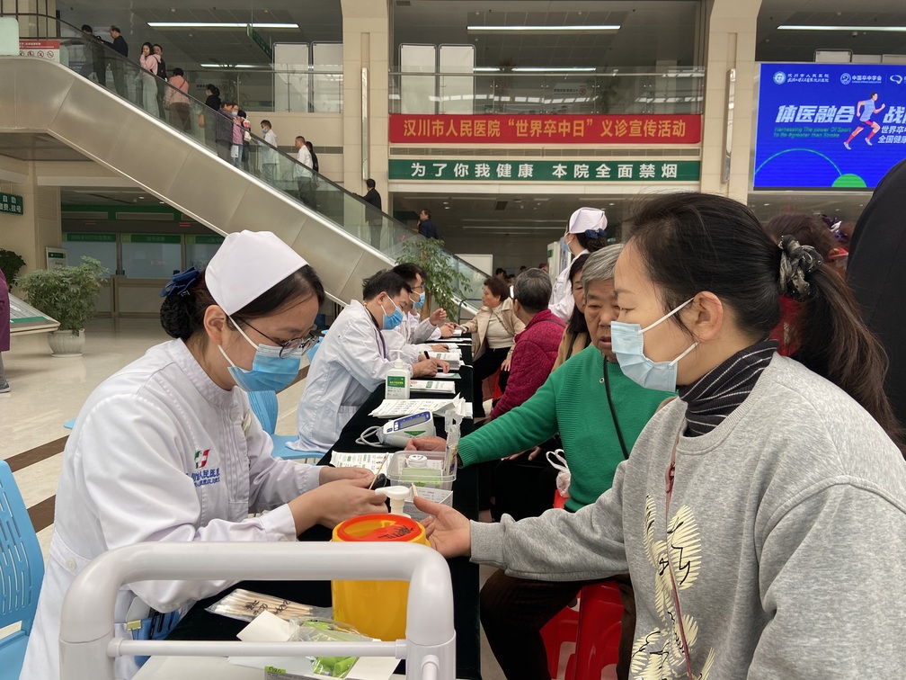 10月28日,在第19个“世界卒中日”来临之际,汉川市人民医院神经内科在门诊大厅举行了义诊活动。活动现场,医护人员井然有序地为群众进行免费血糖检查、血压测量,发放健康宣传资料,为前来咨询的群众仔细讲解脑卒中的预防、识别、救治等知识。此次义诊共接诊群众205人次,发放宣传手册250余份。