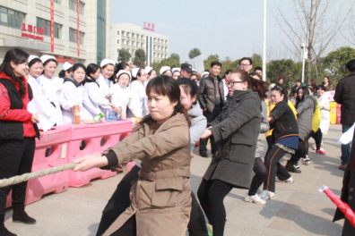 3月6日下午,市人民医院女职工拔河比赛在医院大门口隆重举行。53支参赛队员身着统一的工作服,由各领队举着代表队的牌子,整齐的排列在操场上。活动开幕式由工会副主席揭加强同志主持,党委副书记周心明致开幕词。周书记在讲话中对全院女同志致以节日问候和美好的祝愿,并希望全体女职工在国际“三八“妇女节这个快乐的节日里,用拔河比赛形式来庆贺属于女性朋友自己的节日,用拔河比赛的激情来抒发心中的情怀,用拔河比赛的精神,共同创造美好的未来。随后,周书记并宣布2015年庆“三八”女职工拔河比赛正式开始。