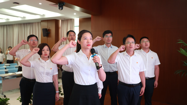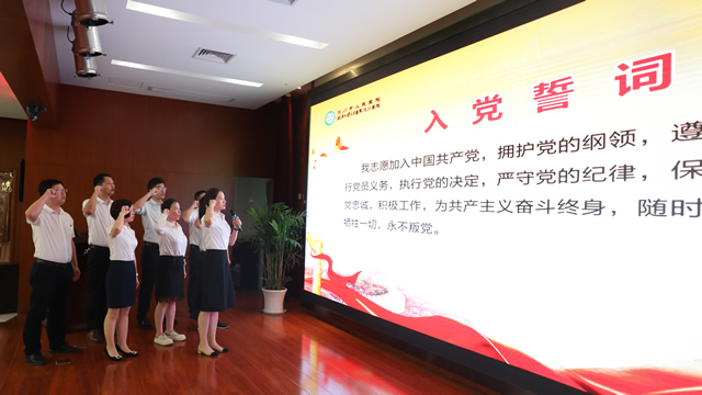 邓飞、周芬等7名新党员在李娜同志的带领下,庄严地举行了入党宣誓仪式,全体党员重温了入党誓词。