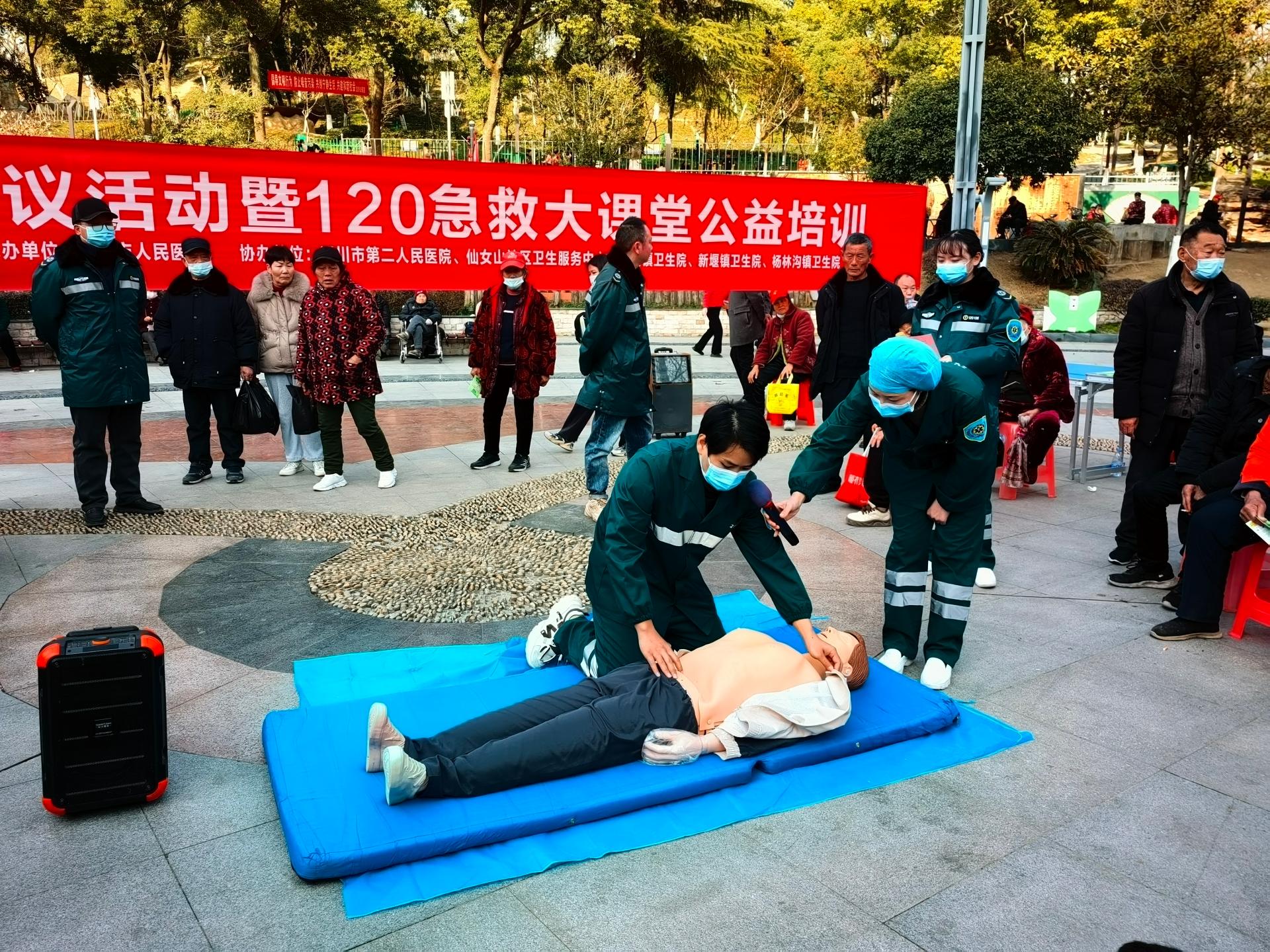 为增强群众自救互救能力,完善城乡医疗急救体系,1月20日,由汉川市急救中心、汉川市红十字会主办、汉川市人民医院承办的 “国家急救日倡议活动暨120急救科普大课堂”公益培训活动在市火猴山公园成功举行。