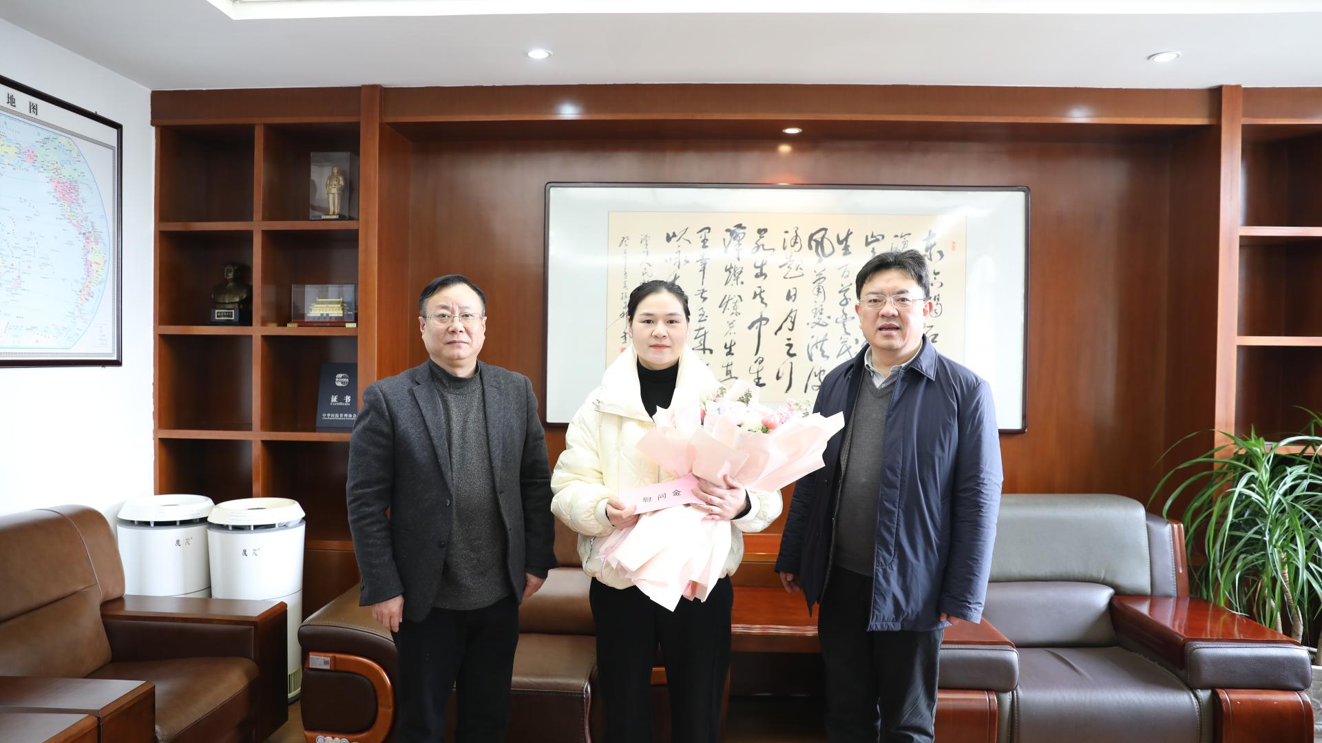 1月26日,在新春佳节即将到来之际,汉川市卫健局党组成员、市人民医院党委书记李明,市人民医院院长熊勇慰问了医院援非医生詹必伟家属,送去了新春祝福。