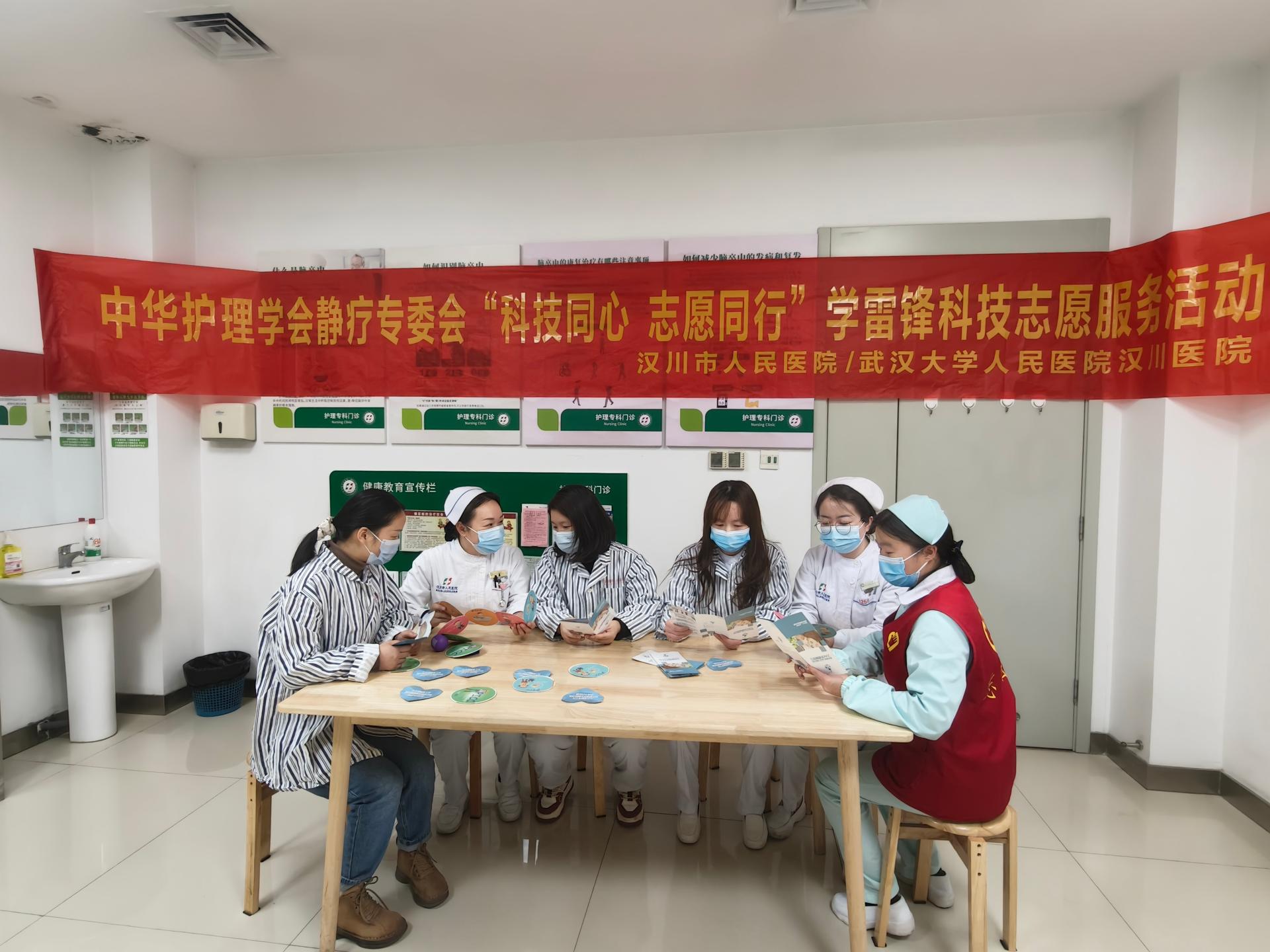 为积极响应中华科协及中华护理协会号召,深入践行雷锋精神,丰富护理科技志愿服务内涵,3月1日-3月5日,汉川市人民医院静脉治疗专科护理小组举办了以 “科技同心,志愿同行”为主题的“学雷锋科技志愿服务周”活动,旨在普及静脉治疗相关知识,把静脉治疗知识以创新、有趣的形式呈现给大家,让更多人了解健康知识,提高自我护理意识。