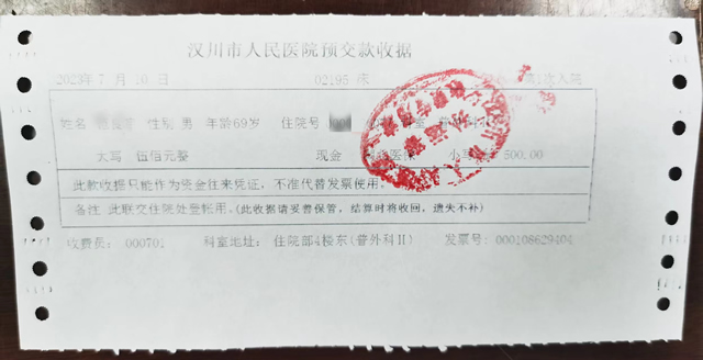 2023年7月4日,范爹爹因“间断右上腹疼痛伴畏寒、发热三天”入住汉川市人民医院普外科II。管床医师余伟迅速判断病情,考虑为胆总管结石并梗阻、感染,建议手术治疗。患者家属听闻某些传言,术前执意送上“心意”红包。几经推脱无果后,为让患者能够安心治病,他只好暂且收下红包,并第一时间告诉护士长,将红包为患者补缴了住院押金。