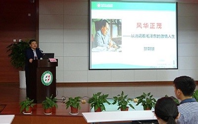 院党委书记贺朝雄以《风华正茂——从诗词看毛泽东的激情人生》为题,为大家带来了一场精彩演讲。他分别从“诗人毛泽东”、“五‘大’诗词鉴赏”及“人生启迪”三个方面阐述了一代伟人的诗意人生。