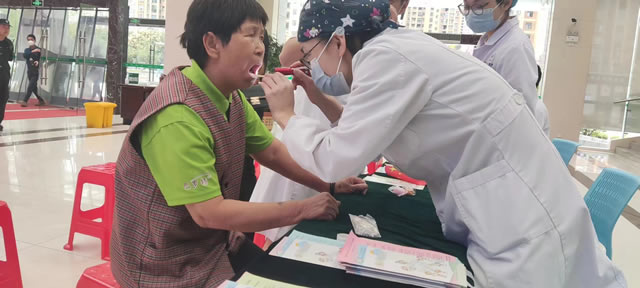 活动现场,口腔科医护人员热情地接诊每一位群众,为前来咨询的群众有序进行口腔检查,仔细地讲解口腔疾病治疗方案及爱牙护牙知识,现场还发放了口腔健康宣传资料及小礼品。医护人员耐心解答和细心的检查服务,受到了在场群众的一致好评。