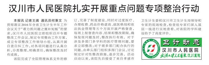 《孝感日报》:汉川市人民医院扎实开展重点问题专项整治行动